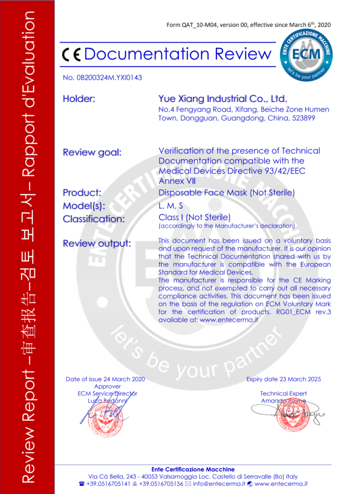 恭祝東莞市越祥實業有限公司在創思維驗廠之家輔導下通過FDA及CE認證