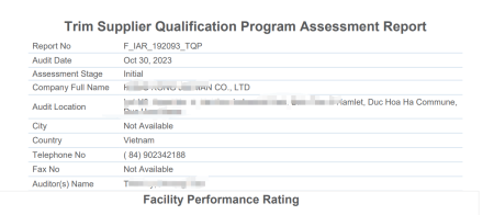 祝賀HONGKONG俊文(越南)有限公司2023年快速通過ITS-TQP驗(yàn)廠審核并且獲得94分