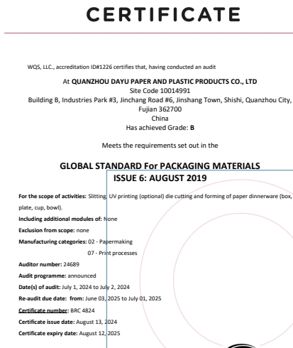在創(chuàng)思維驗廠網(wǎng)老師專業(yè)技術(shù)、全程跟進(jìn)耐心細(xì)致輔導(dǎo)以及公司全體員工配合下,一次性順利通過FSC認(rèn)證、BRC認(rèn)證、SEDEX-4p驗廠審核,為將來公司發(fā)展奠定了良好的發(fā)展基礎(chǔ),既開拓了市場同時也增加了消費者對公司的信賴,在這里再次祝賀泉州大宇包裝制品有限公司2024年一次性成功通過FSC認(rèn)證、BRC認(rèn)證、SEDEX-4p驗廠審核,同時也期待未來再次與創(chuàng)思維驗廠網(wǎng)合作!